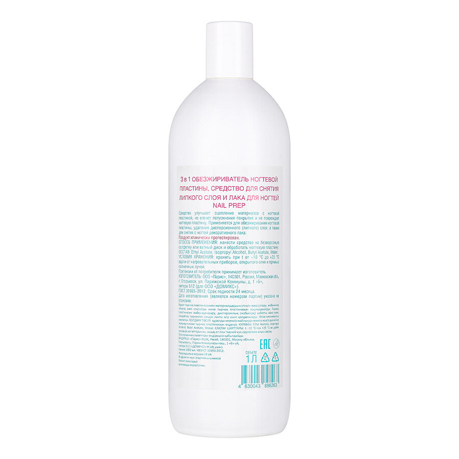 DOMIX Обезжириватель для ногтей(с растворителями) Nail prep 3 в 1, 1 л