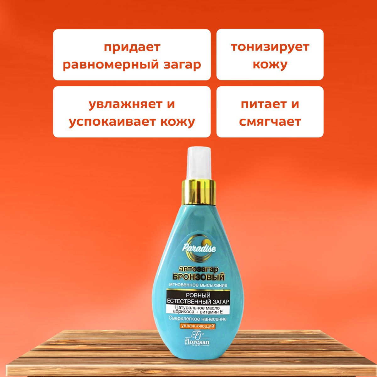 Спрей-автозагар увлажняющий Floresan золотистый, 160 мл