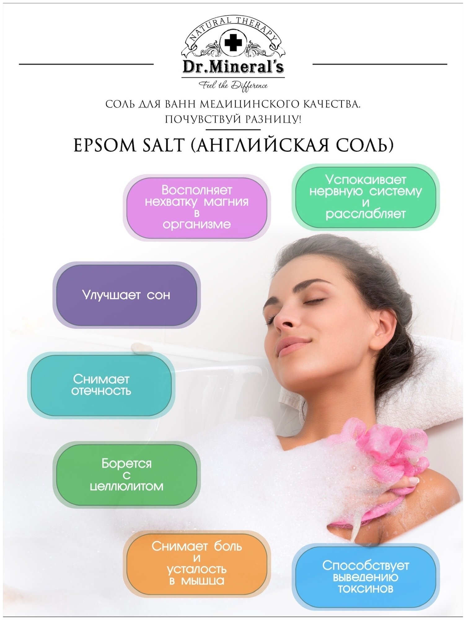 Dr.Mineral's Английская соль для ванн Epsom, магниевая для похудения, расслабления, косметическая, 1 кг