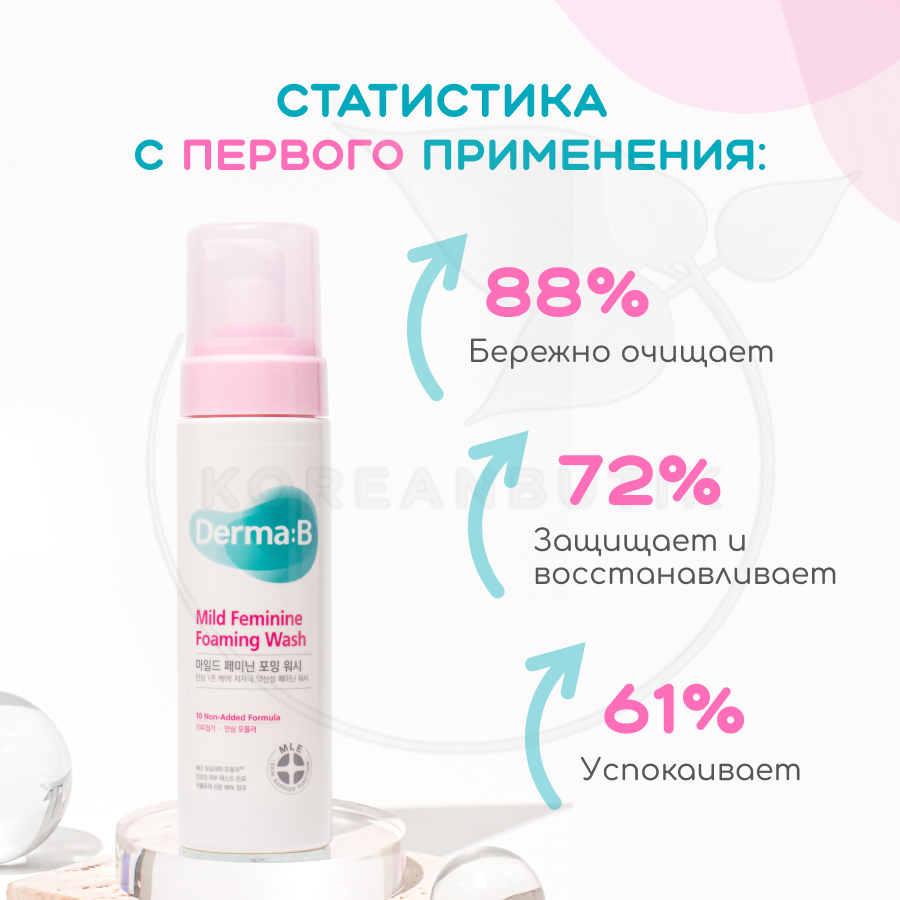 Слабокислотная очищающая пенка для интимной гигиены Derma:B Mild Feminine Foaming Wash 200 мл интересное: