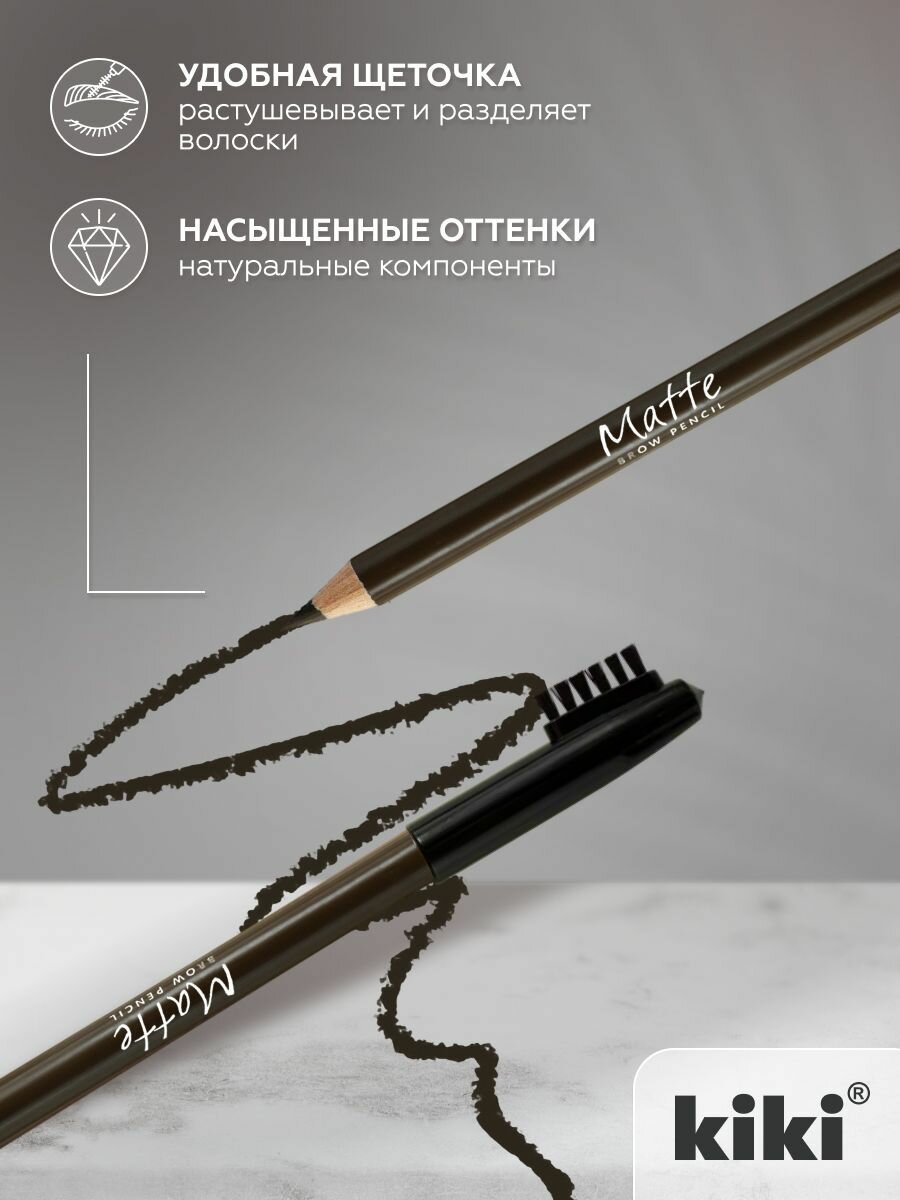 Карандаш для бровей kiki eyebrow matte, тон 63 коричневый, с щеточкой-расческой для моделирования и прорисовки, стойкий макияж бровей