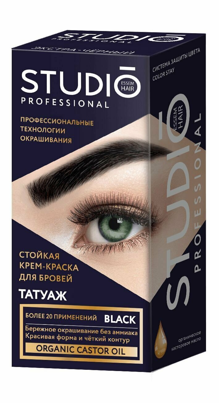 Studio Professional Крем-краска стойкая для бровей с эффектом татуажа, черный, 30 мл + оксид 20 мл / Профессиональная технология обеспечивает ультрастойкое окрашивание волосков и кожи