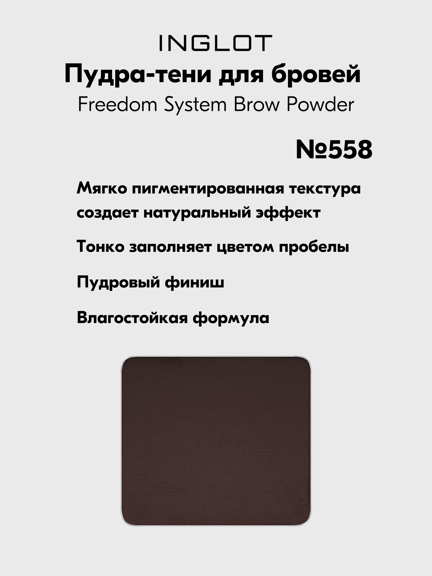 Пудра-тени для бровей пигментированная INGLOT рефил FREEDOM System Brow Powder №558