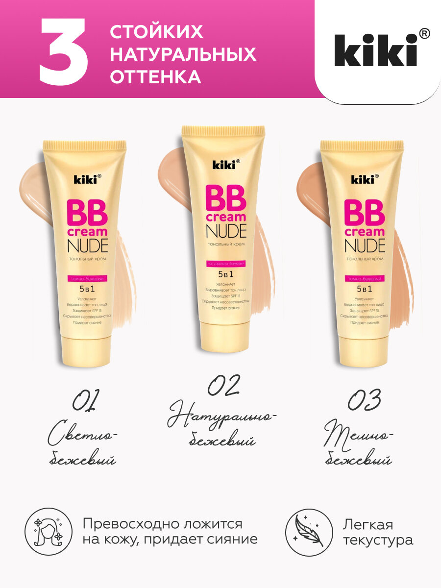 Тональный крем для лица kiki BB NUDE тон 03 темно-бежевый, увлажнение, матирующий, стойкий с SPF 15, 40 мл интересное: