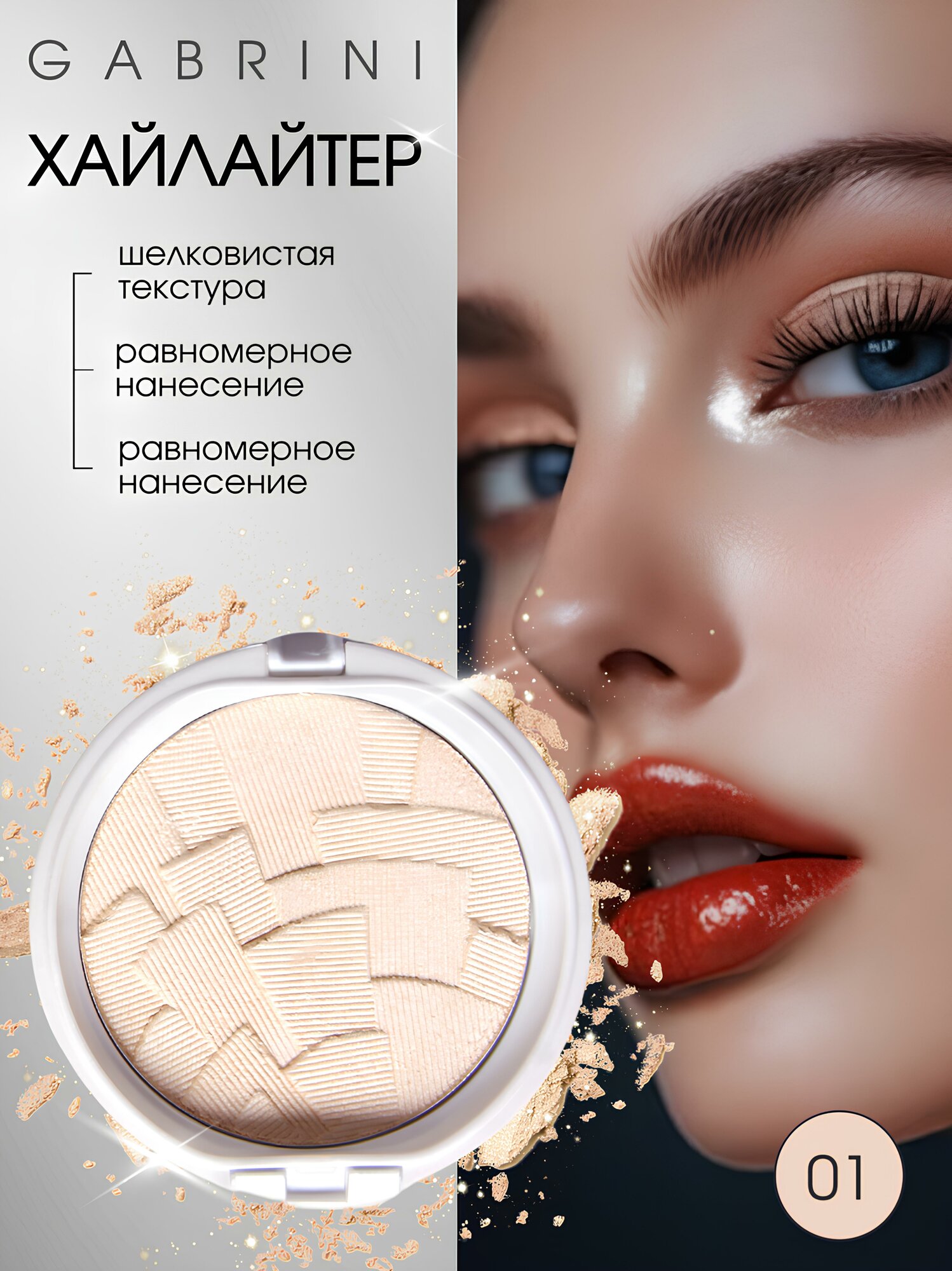 Купить Хайлайтер для лица и тела Gabrini 12,0 г сухой, сияющий корректор для контуринга светло-бежевый цвет: 01