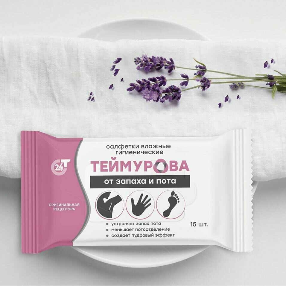 Теймурова салфетки влажные антибактериальные от запаха и пота, 2 упаковки по 15 шт.