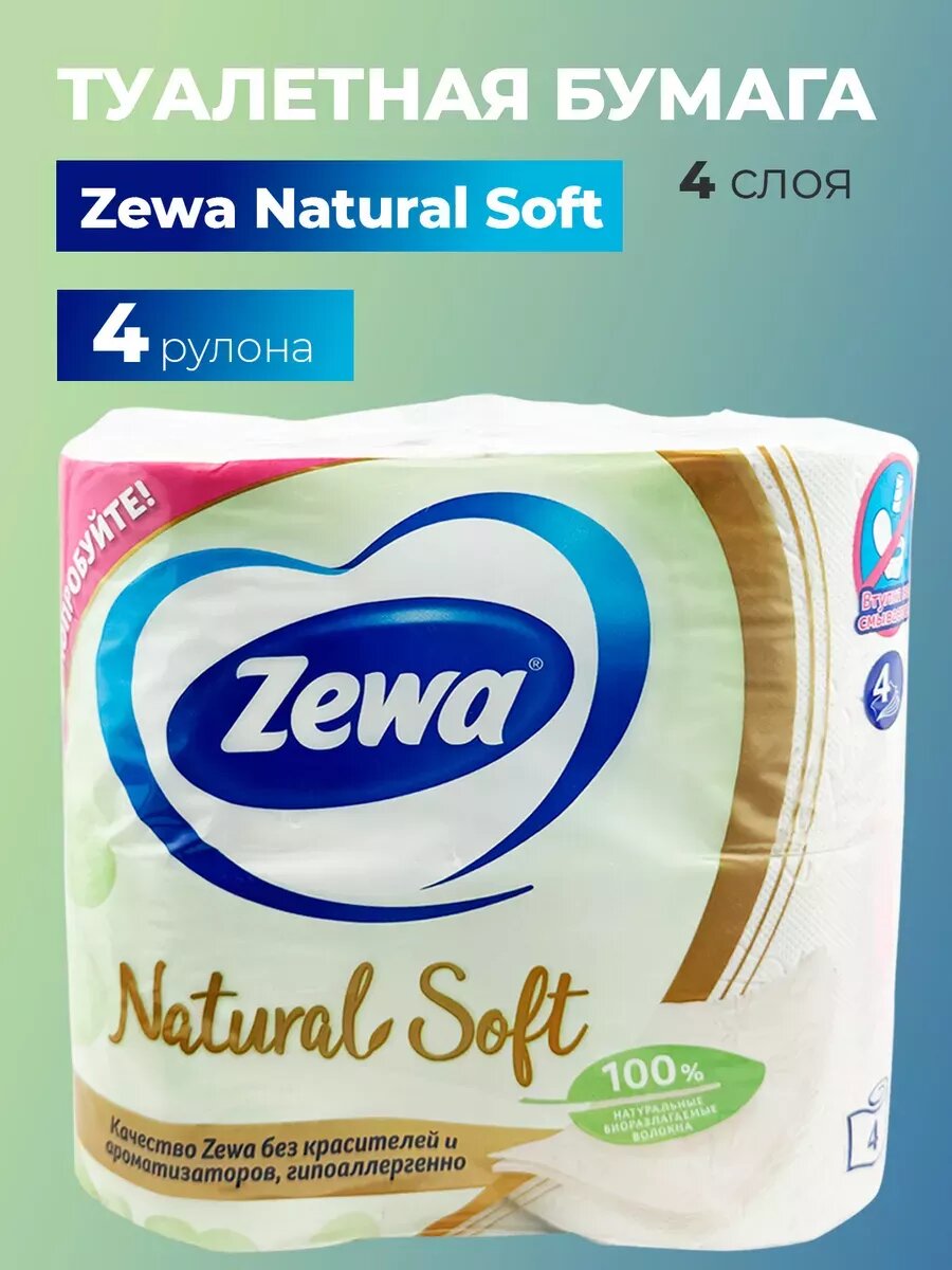 Туалетная бумага Zewa Natural Soft 4 слоя. 4 шт. интересное: