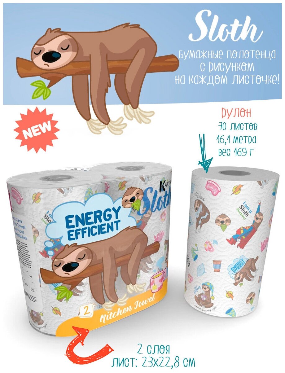 СохранитьПолотенца бумажные "Ленивец", Kartika Collection, 2-х слойные, 2 рул/70 л, World Cart интересное: