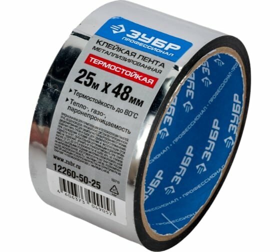 ЗУБР 48 мм, 25 м, 50 гр/м2, металлизированная клеящая лента (12260-50-25) интересное: