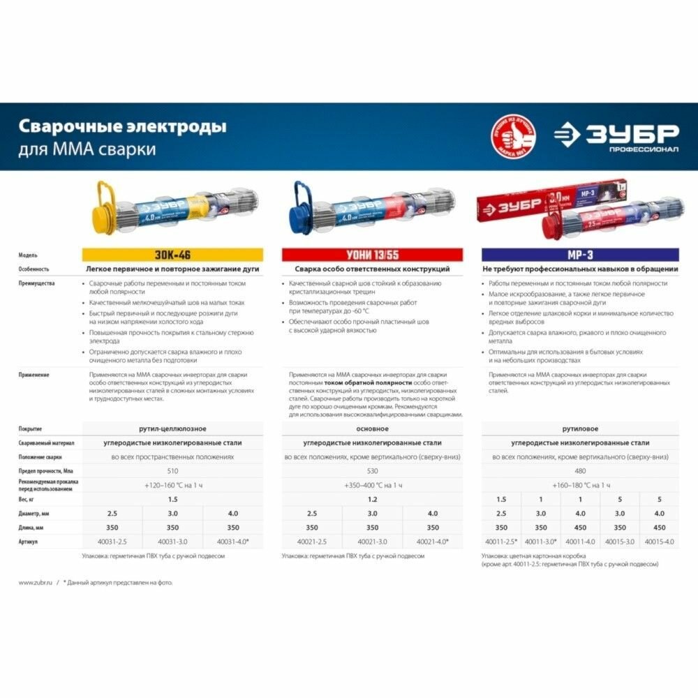 Электрод сварочный Зубр Professional/Профессионал 40021-3.0