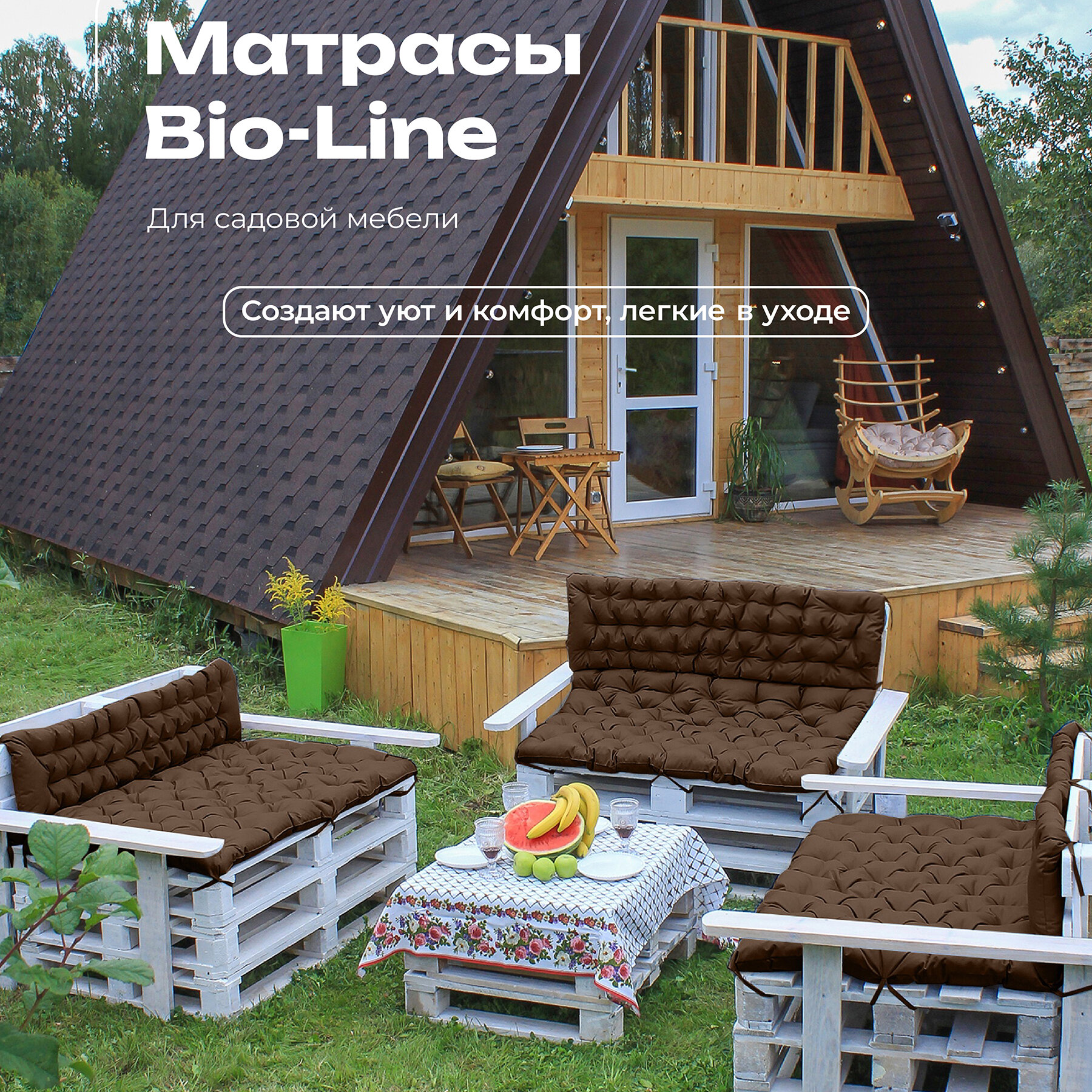 Подушка матрас для мебели и паллет, матрас на подоконник Bio-Line 80х120 см с завязками для дома и дачи с водоотталкивающей пропиткой,шоколад