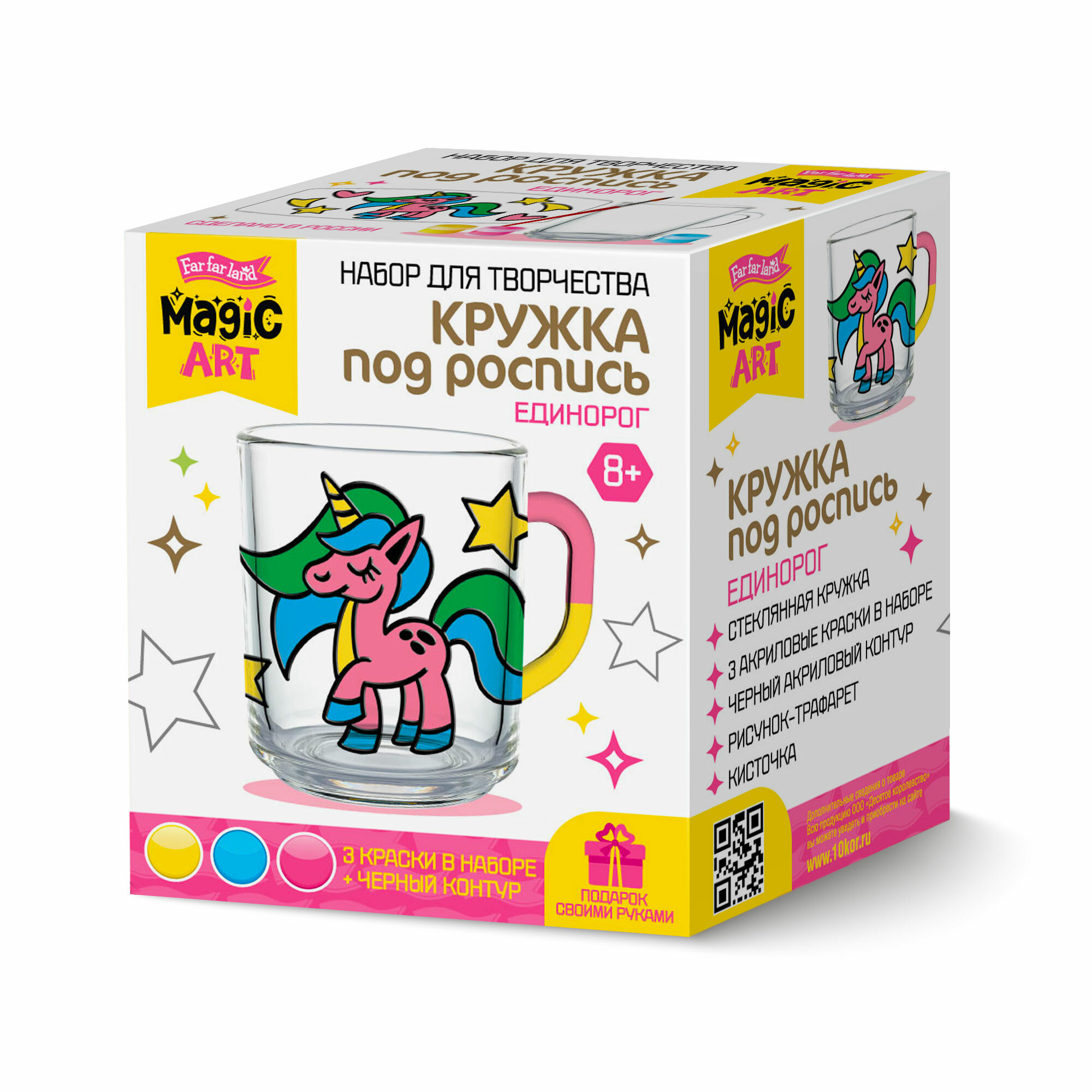Комплект 8 шт, Набор для детского творчества Десятое королевство "Кружка под роспись. Единорог", с красками