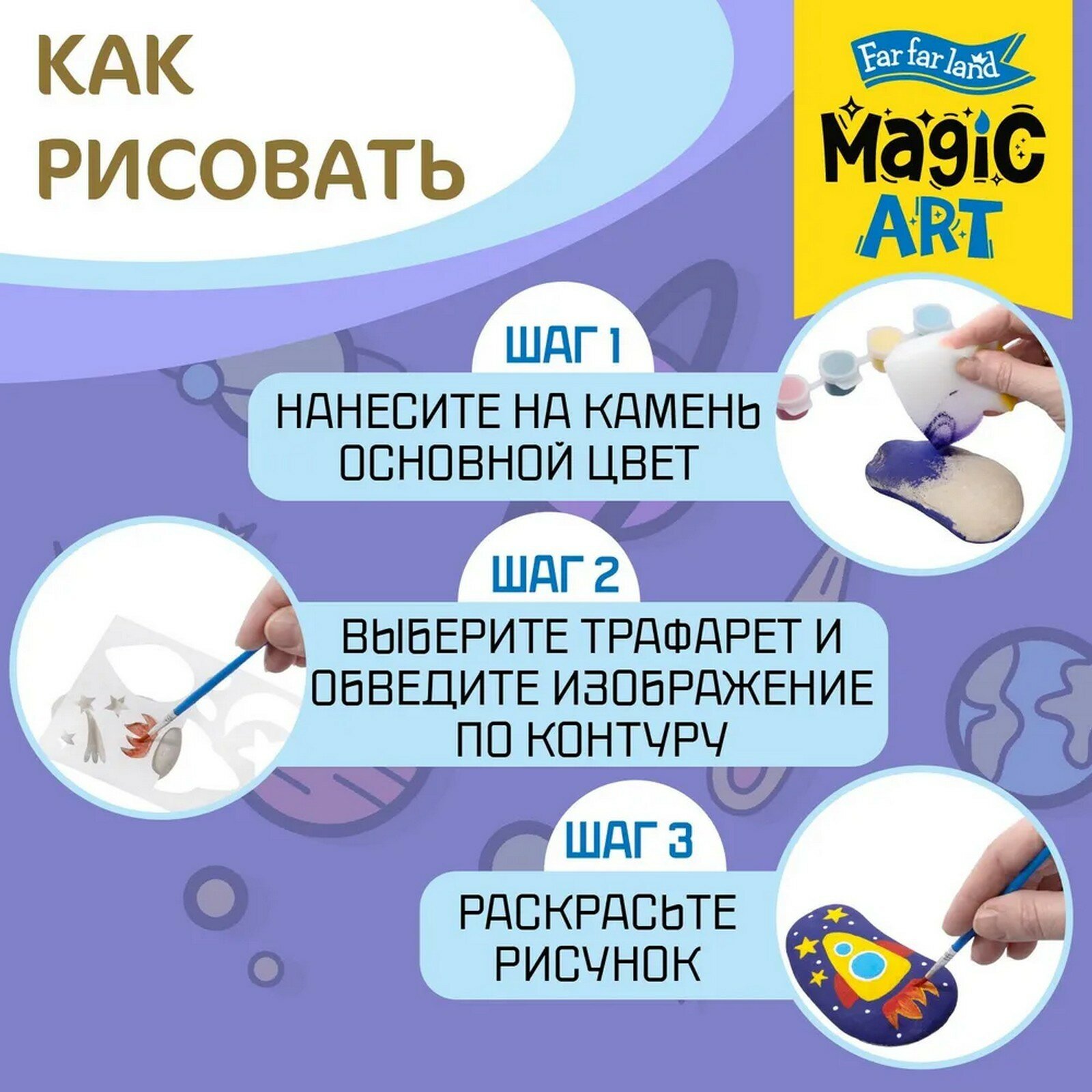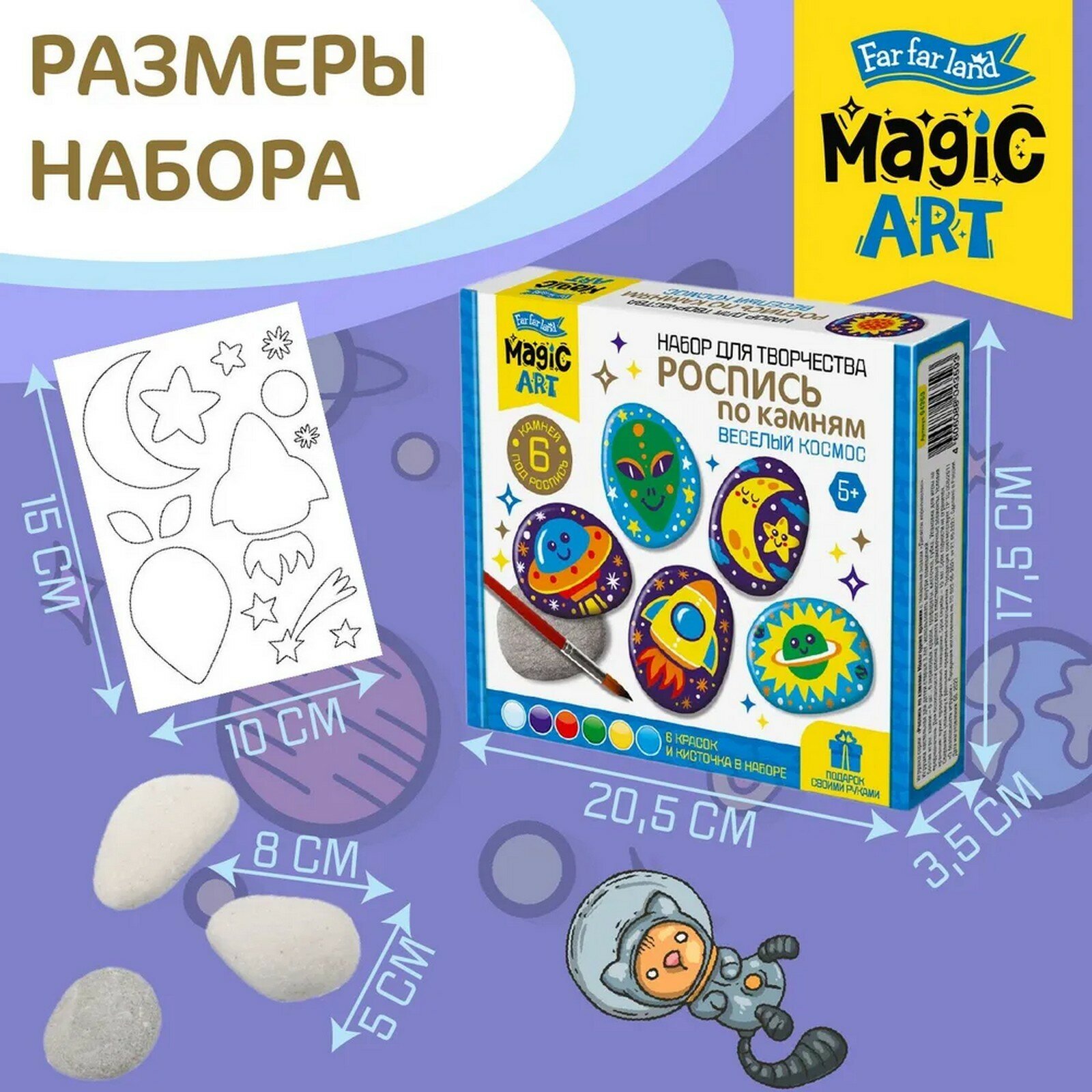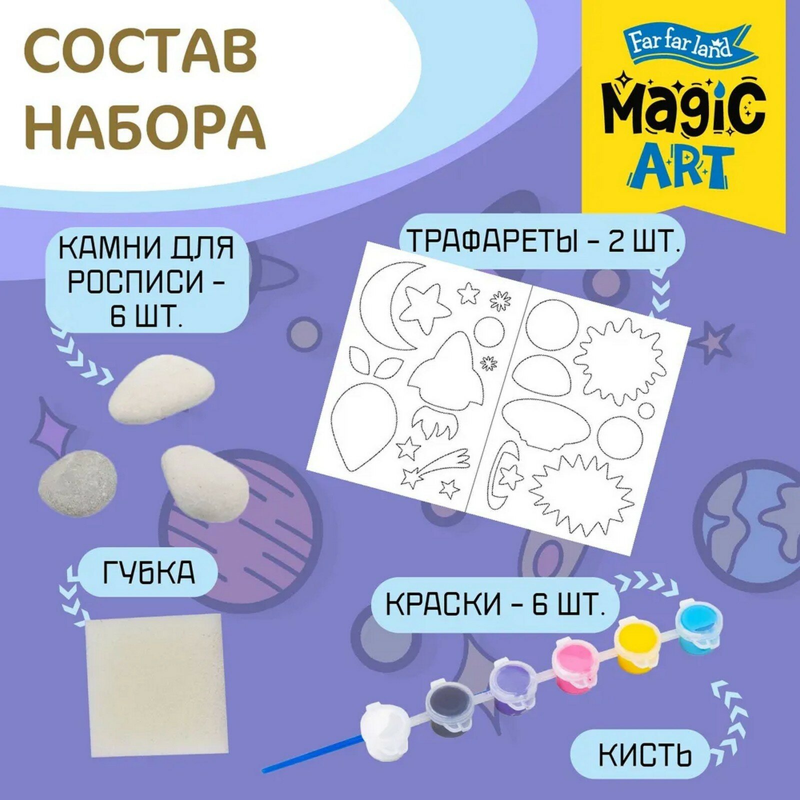 Купить Набор для творчества Роспись по камням Веселый космос 6 камней - Десятое королевство