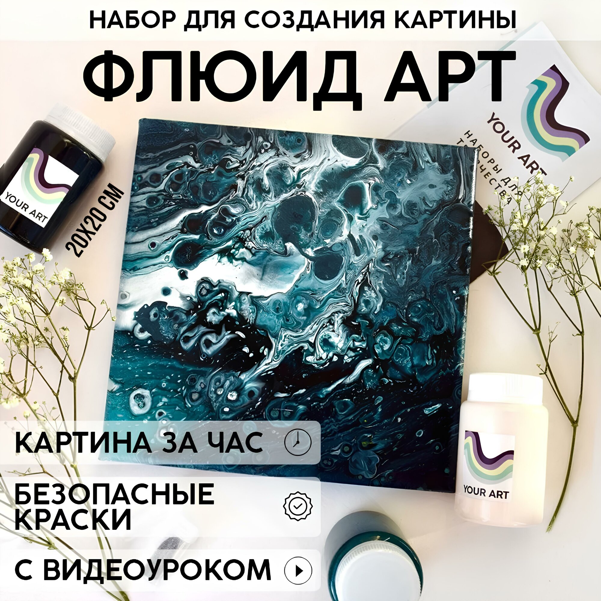 Купить Набор для рисования и творчества YOUR ART BOX в технике флюид-арт/подарочный набор, холст 20x20 см, клад изумруда