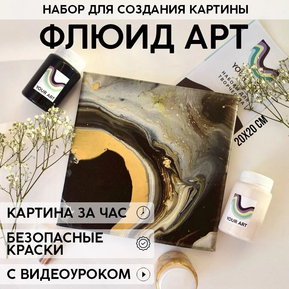 Набор для рисования и творчества YOUR ART BOX в технике флюид-арт/подарочный набор, холст 20x20 см, денежная энергия