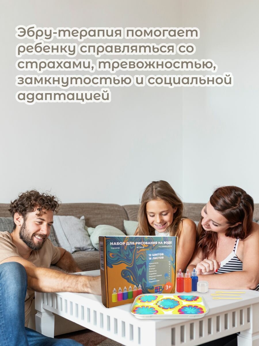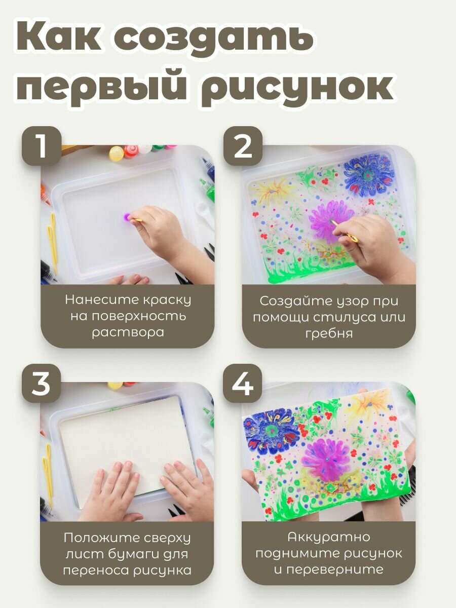 Набор для рисования Эбру, Kids Zone, Рисование на воде для детей/ Подарочный набор для рисования и творчества