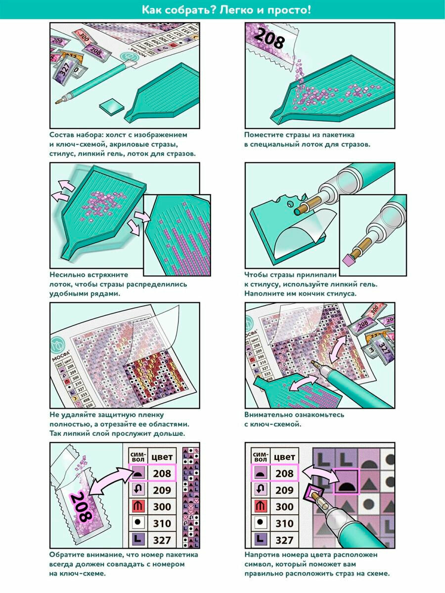 | Особенности | лоток для страз / стилус / холст / цветная схема |