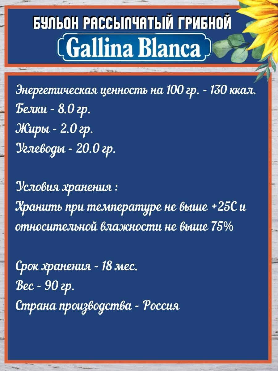 СохранитьГалина бланка Бульон рассыпчатый сухой грибной 6 пачек по 90гр. интересное: