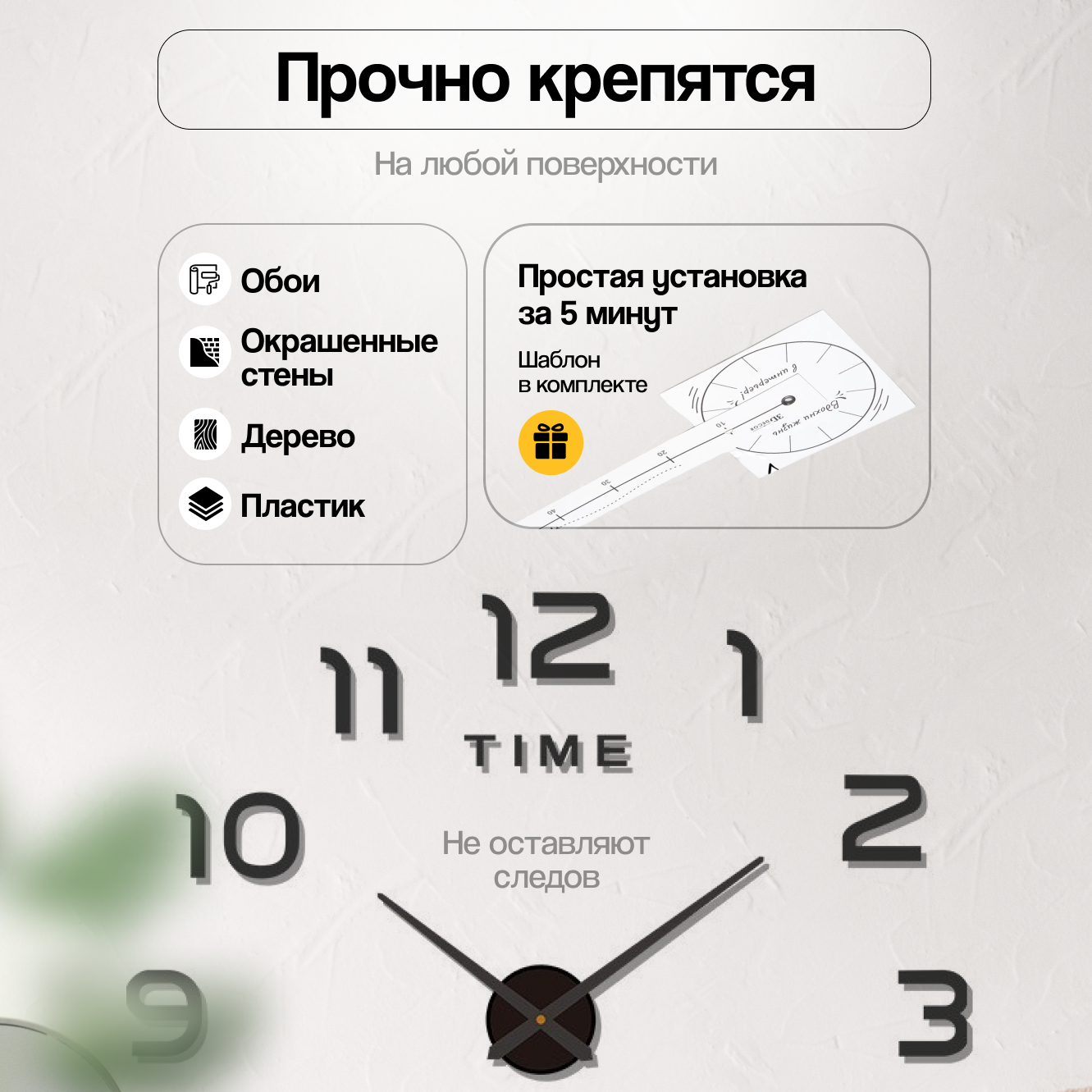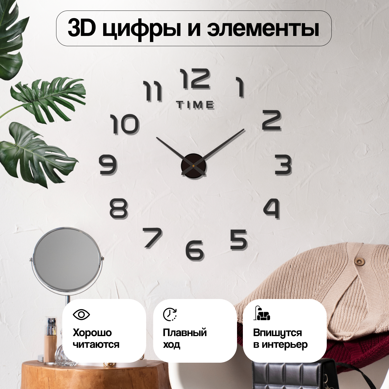 | Особенности | 3d часы, Часы для офиса, бесшумный режим работы, большие интерьерные часы, работа более 2 лет на одном комплекте батареек, работа от батареек типа АА |