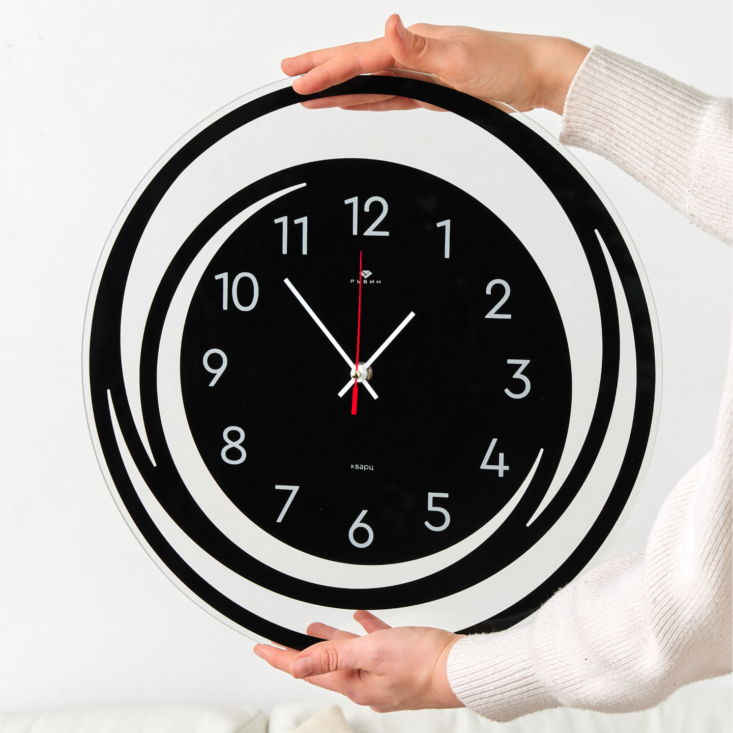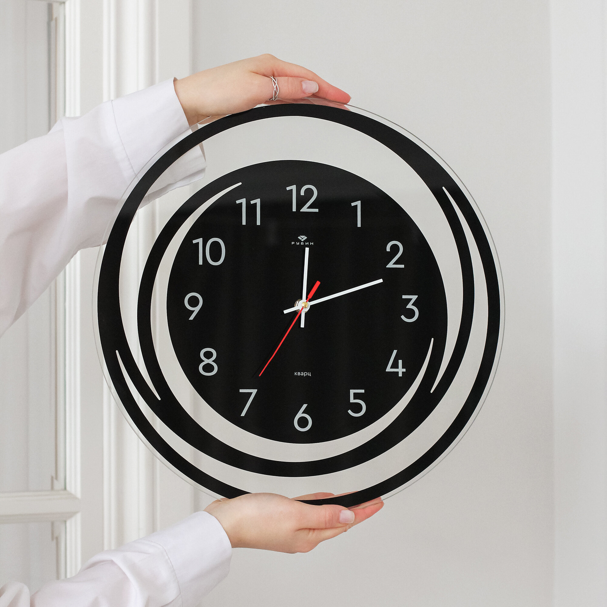 Часы большие настенные кварцевые круглые в классическом стиле Рубин Хром 30 см с большими арабским цифрами