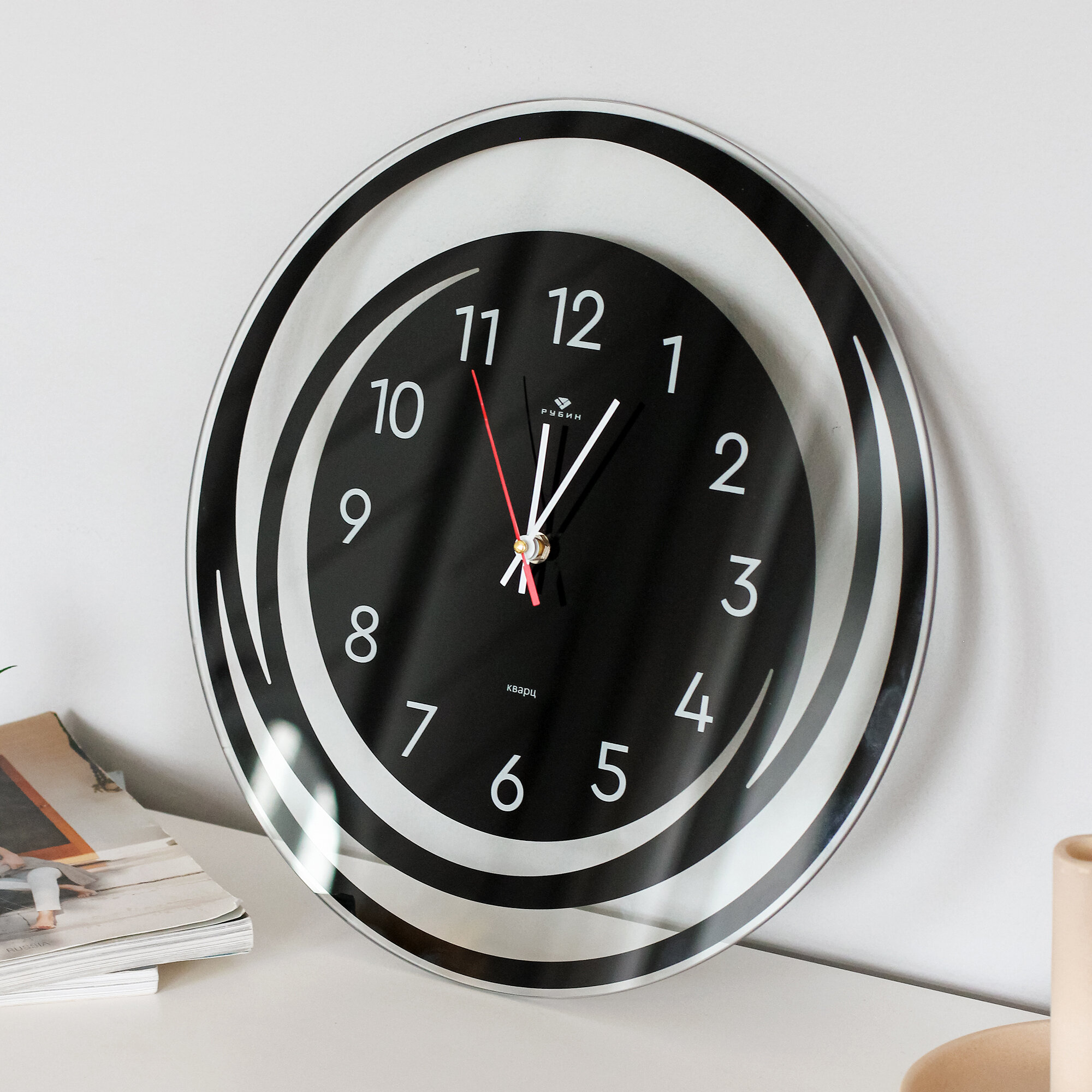 Часы настенные классические Рубин бесшумные, d 25 см кварцевые