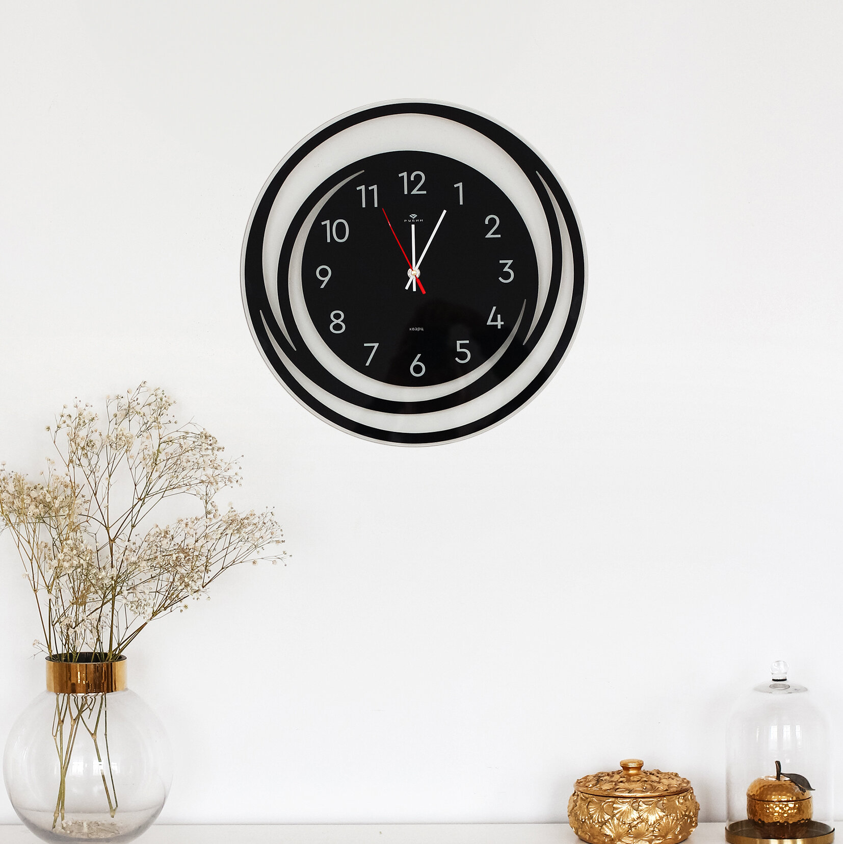 Часы настенные интерьерные черные круги Рубин