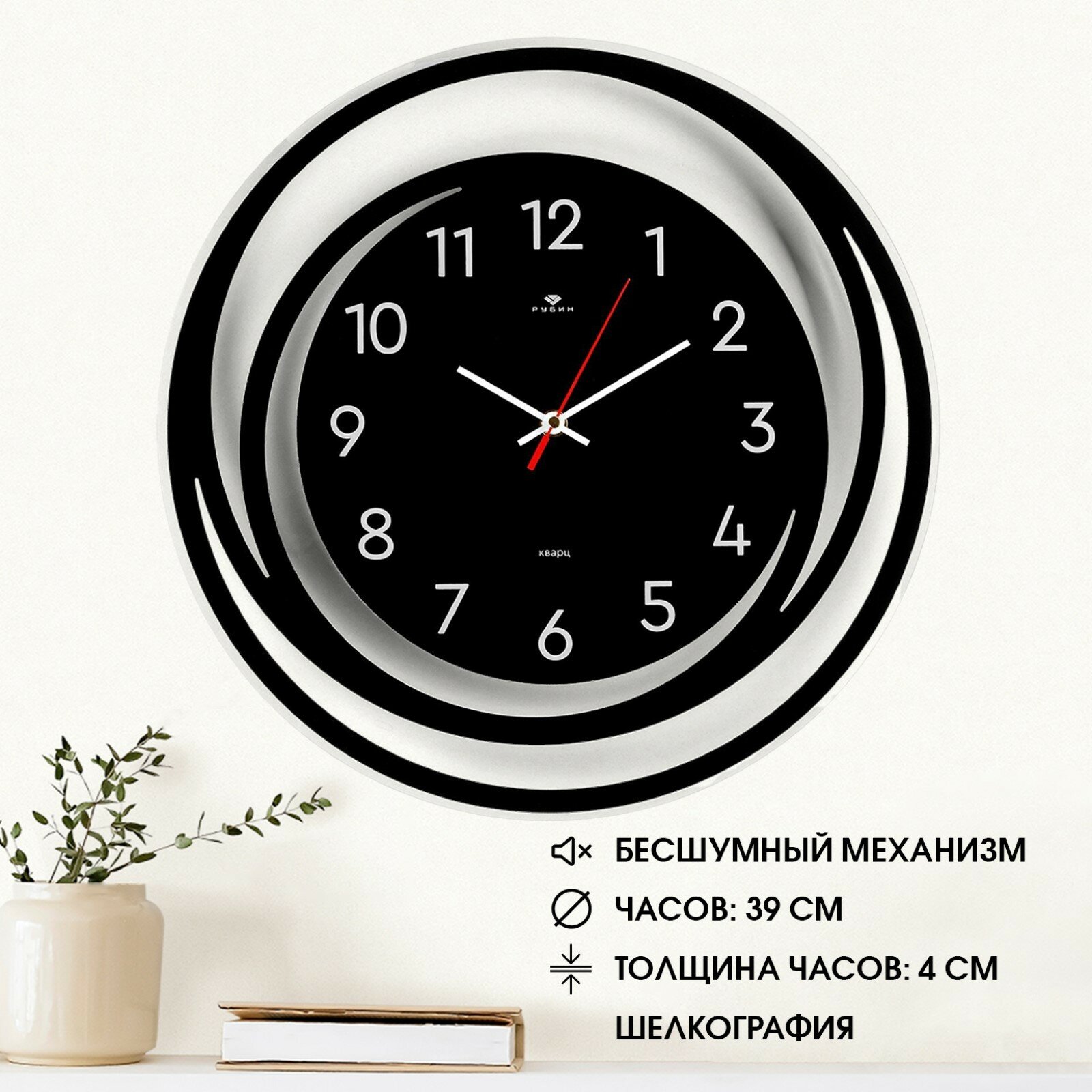 СохранитьКварцевые настенные часы Спираль D=39 см, бесшумные часы с плавным ходом для дома, Черный + Белый интересное: