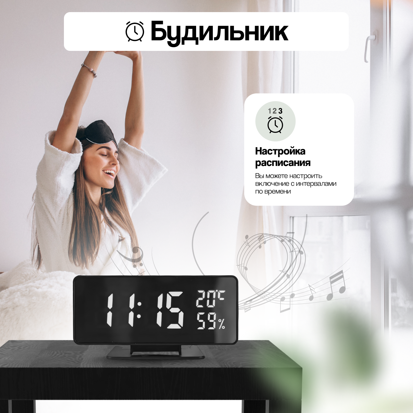 Часы электронные от сети с будильником, термометром и гигрометром, декор для кухни и для дома, подарок на Новый год интересное: