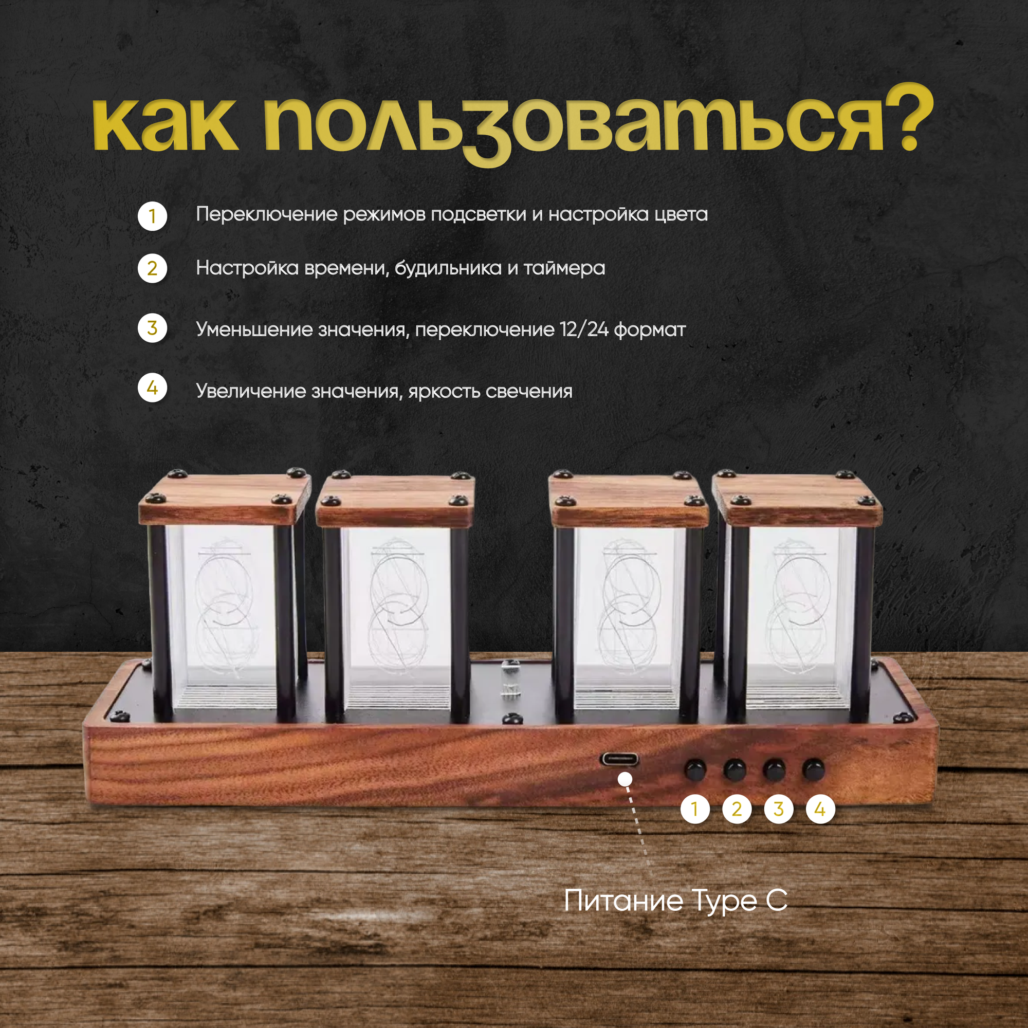 Настольные электронные часы Nixie Tube Clock с будильником, RGB, с питанием от USB интересное: