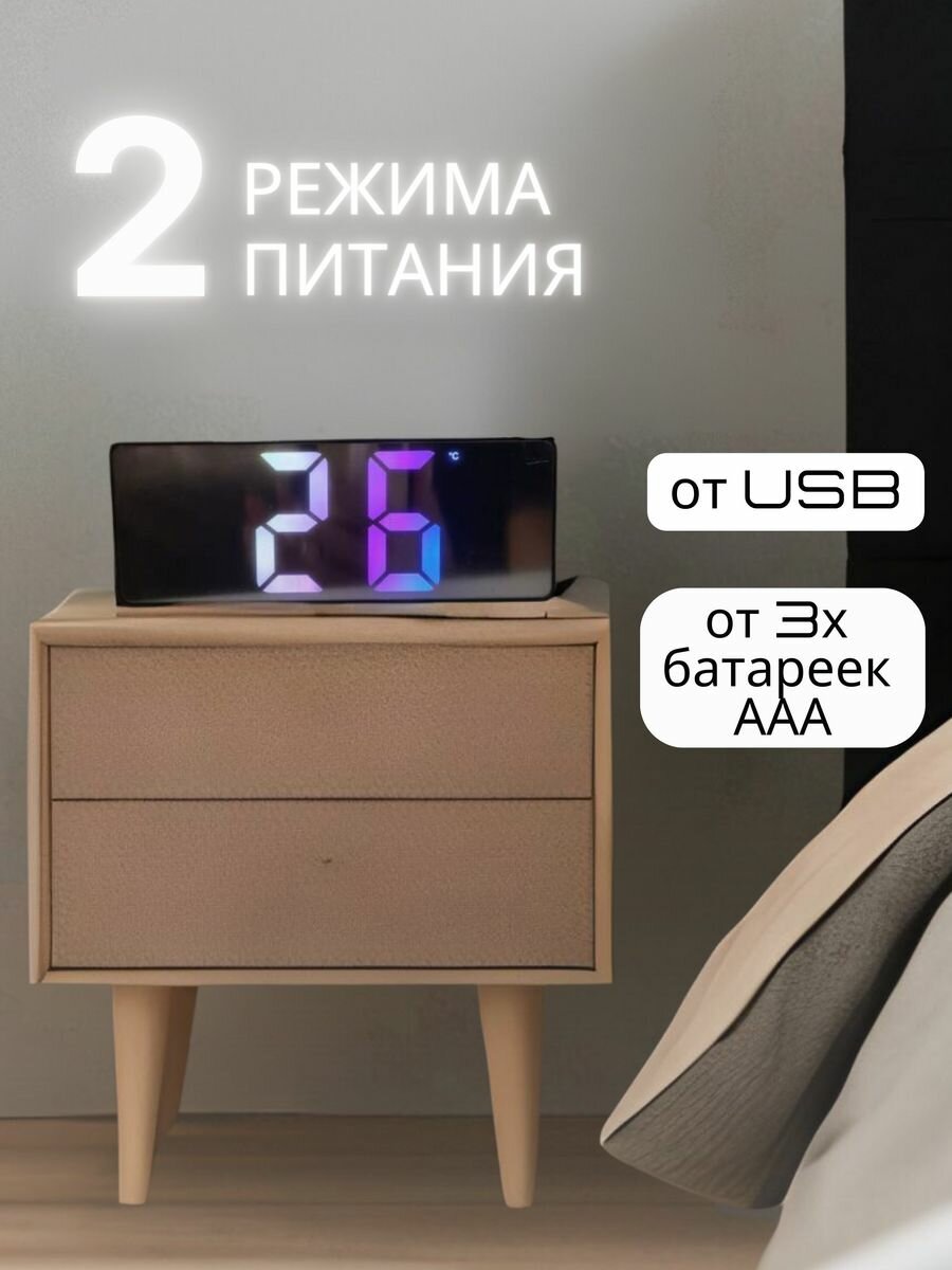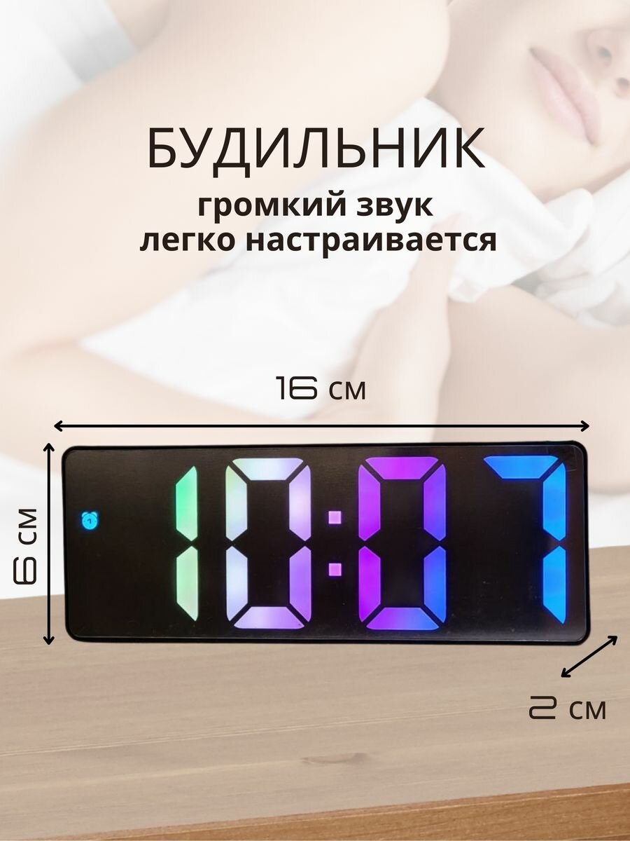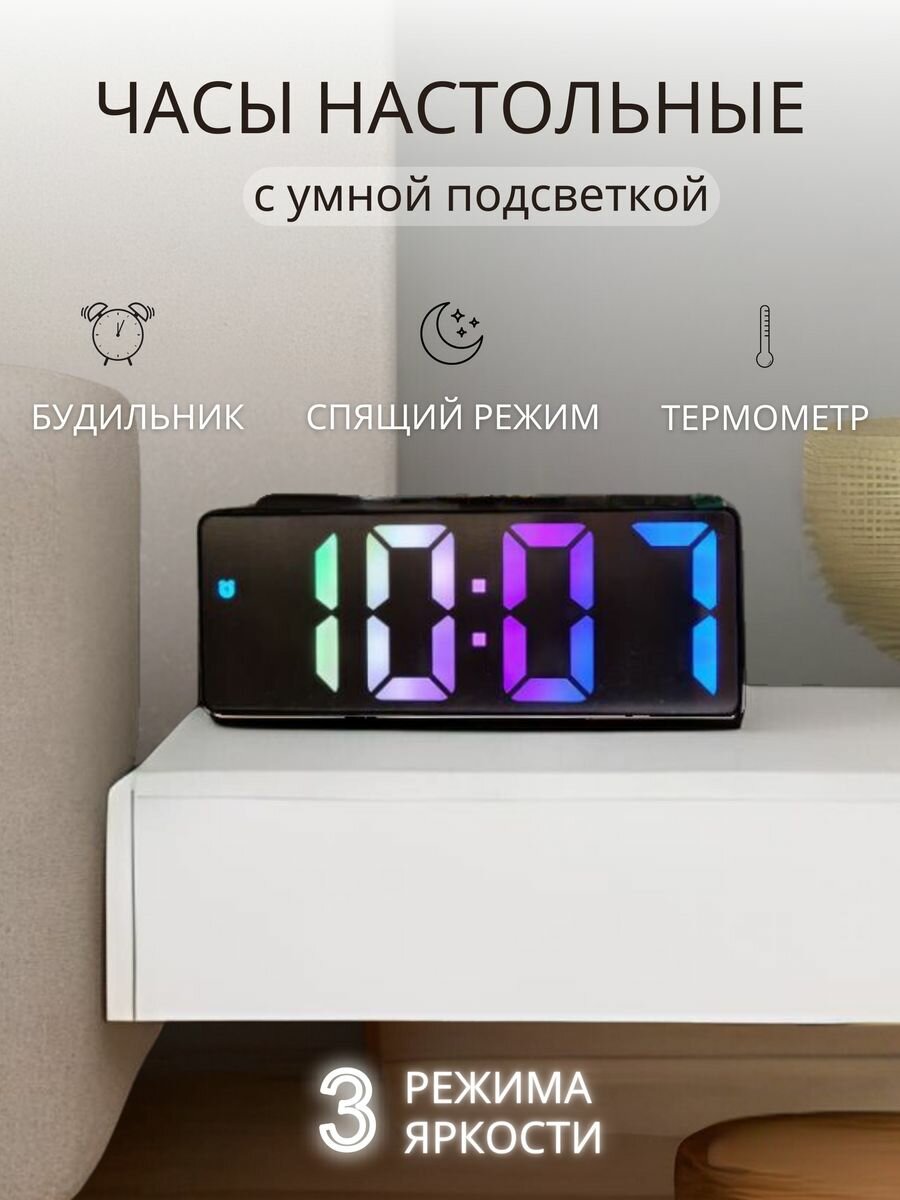 Электронные настольные часы будильник DopMarket с умной подсветкой, термометром, чёрные интересное: