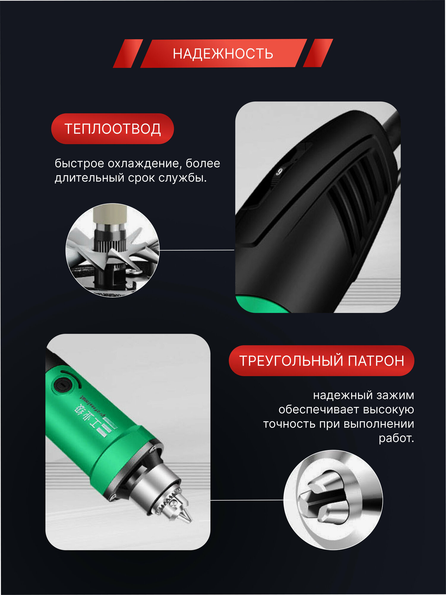 | Комплектация | гравер - 1шт., ключ - 1шт., щетки - 2шт., инструкция на русском языке - 1шт. |