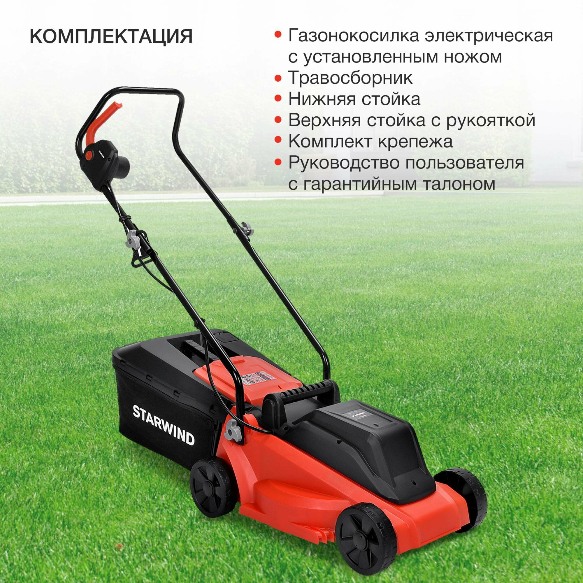 Газонокосилка StarWind ELM-1200, 32см интересное: