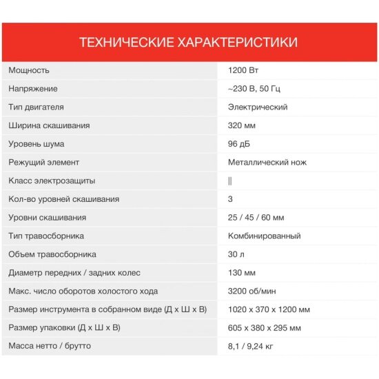 | Дополнительные функции | регулировка высоты скашивания |