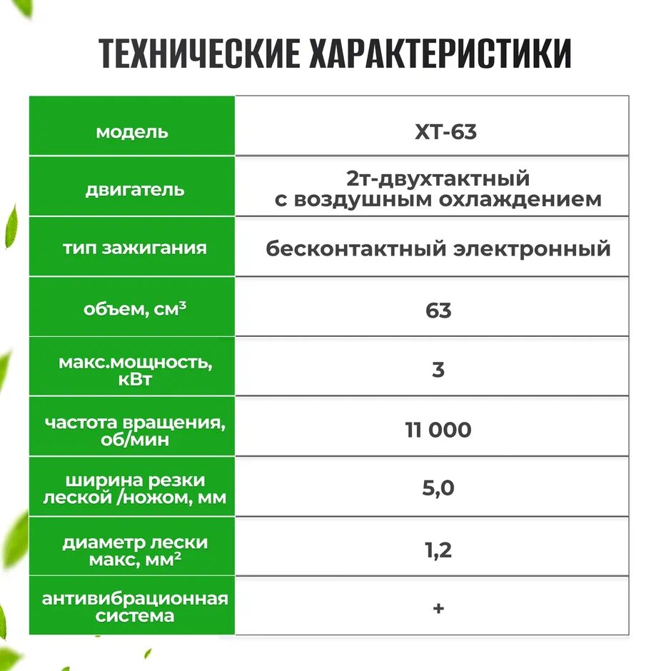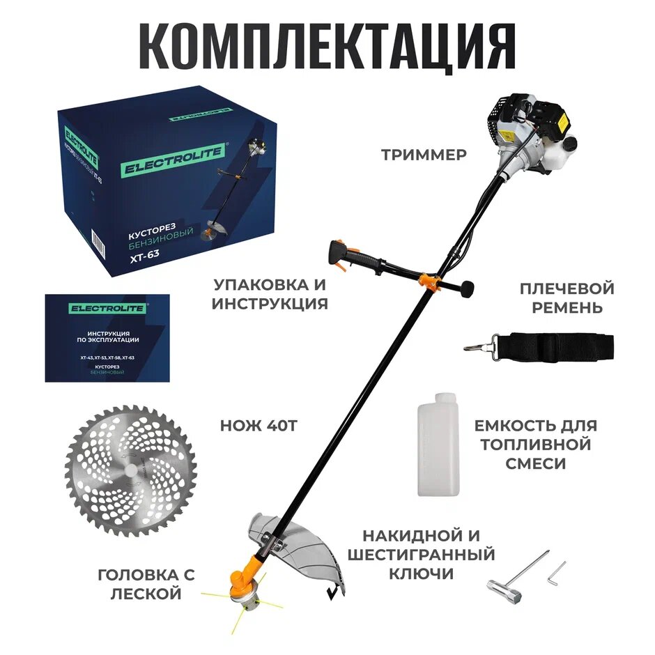 Триммер бензиновый Electrolite для травы XT-63 ( 630 куб.см , 2х тактный, 9ти гранный вал ) интересное: