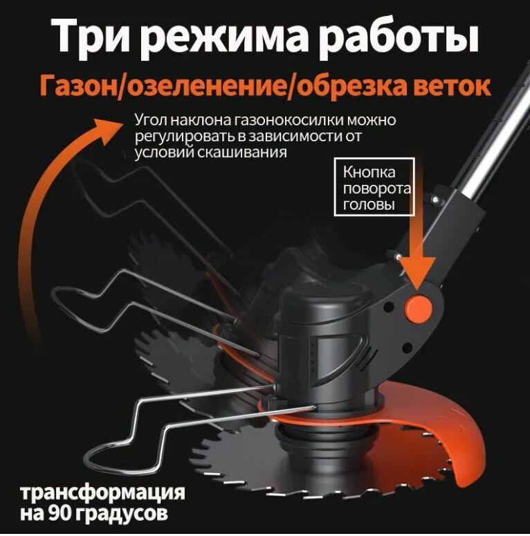 Триммер Садовый аккумуляторный 17 насадок, ElroMos, 21В, 36 VF, 2 АКБ, HT901-2 интересное: