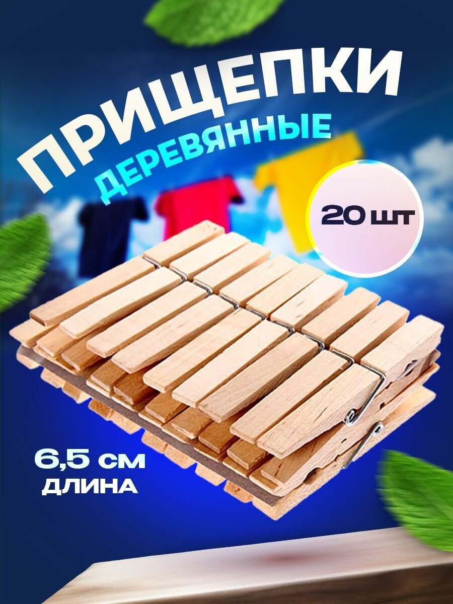Прищепки для белья деревянные Набор 20шт 6.5см интересное: