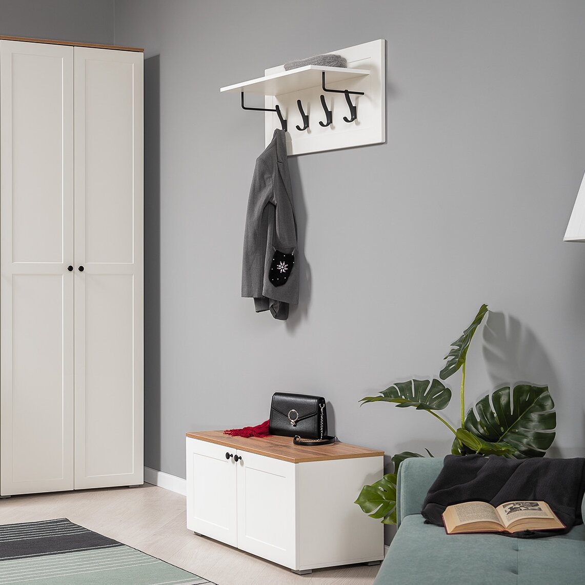 Первый Мебельный Настенная вешалка с полкой Остин для прихожей, 4 крючка, 79.7х29.6х39.7 см, Белый шагрень интересное: