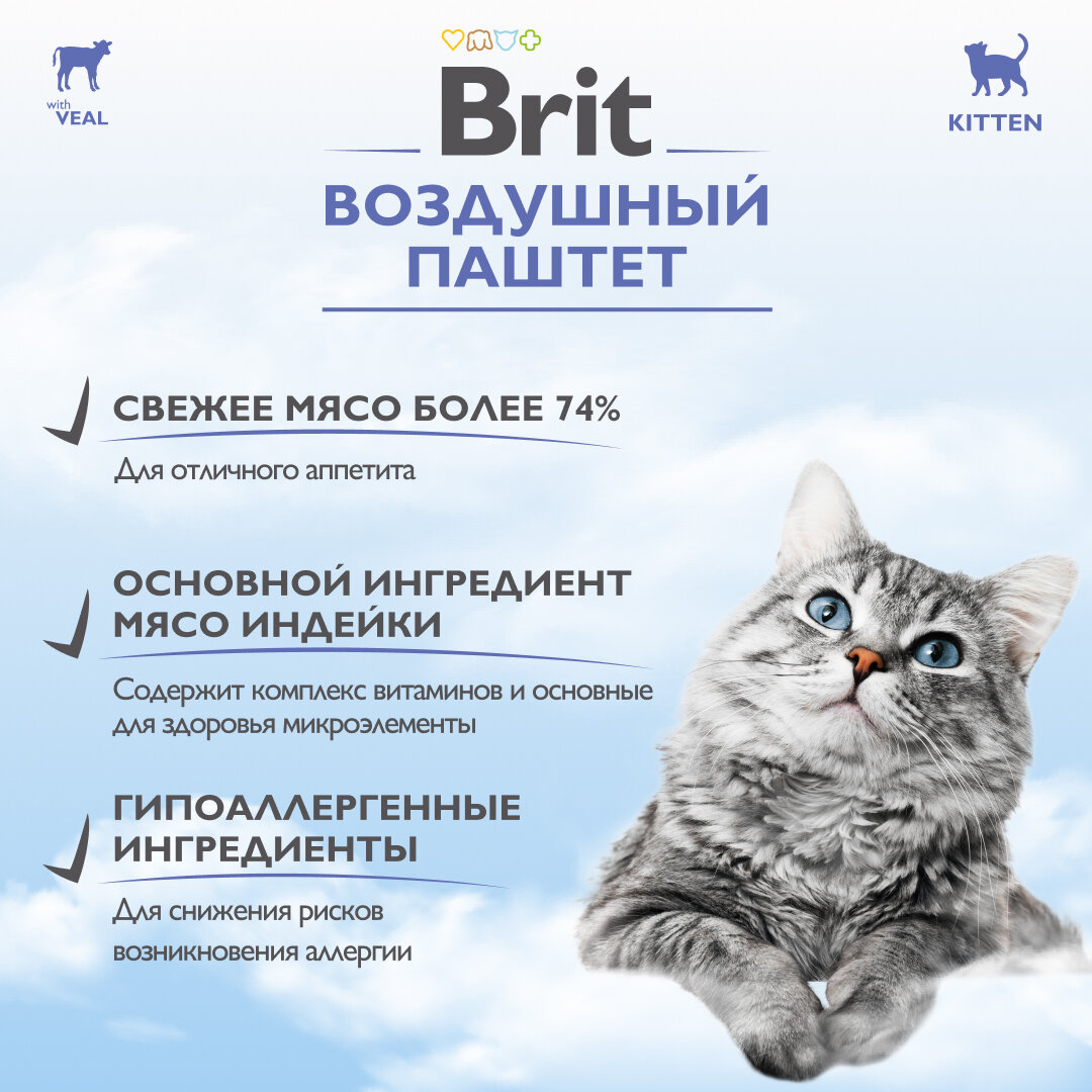 Влажный корм для котят Brit Воздушный паштет с телятиной 6 шт х 100 г
