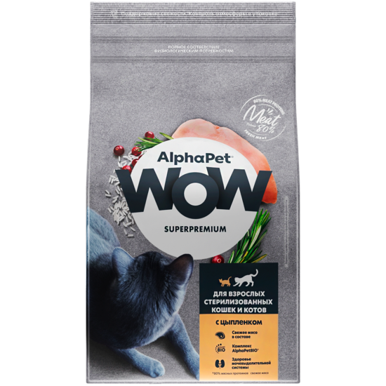 Купить Сухой корм AlphaPet WOW Superpremium (АльфаПет) для взрослых стерилизованных кошек и котов c цыпленком, 1,5 кг