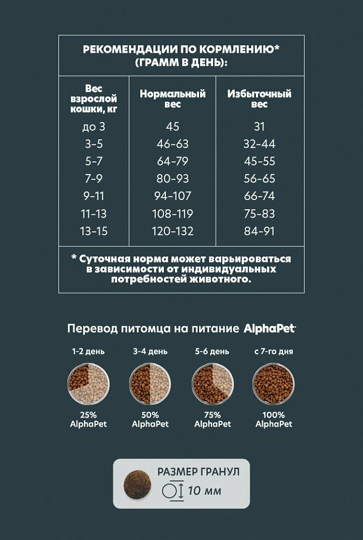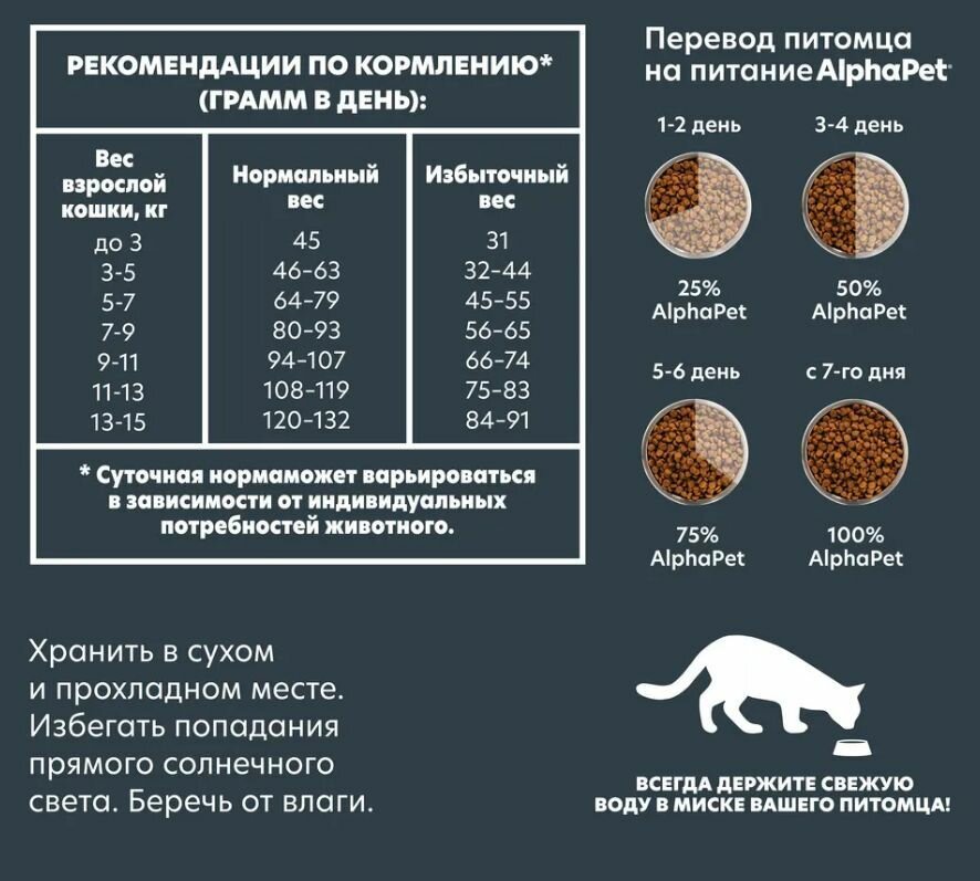 | Особые потребности | для здоровья кожи и блеска шерсти / для здоровья костей и суставов / для стерилизованных/кастрированных / профилактика МКБ / профилактика избыточного веса |
