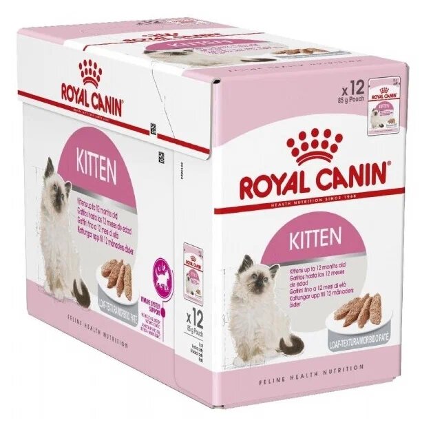 Влажный корм для котят Royal Canin Kitten в возрасте до 12 месяцев (паштет), 12шт х 85гр