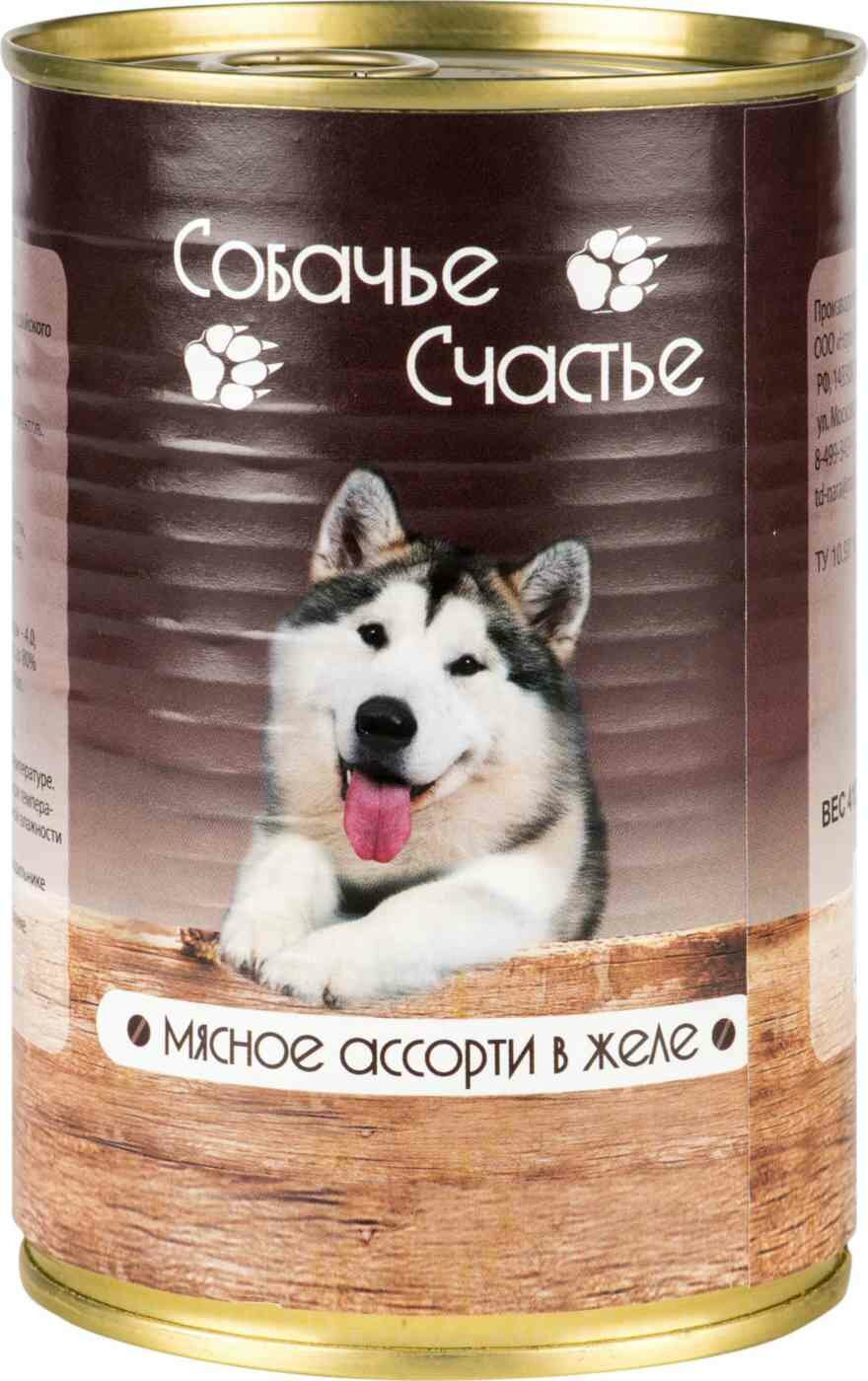 Консервированный корм для собак, Собачье Счастье, мясное ассорти в желе, 750 г, 1 шт.