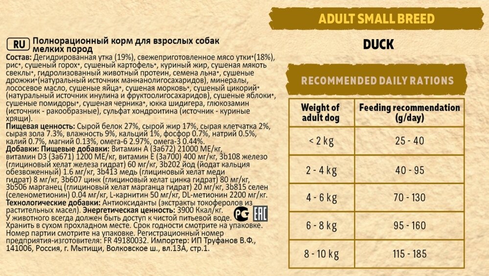 Корм для собак сухой для мелких пород BROOKSFIELD (Бруксфилд) Утка, 6 кг