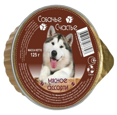 Собачье счастье консервы для собак Мясное ассорти 125г