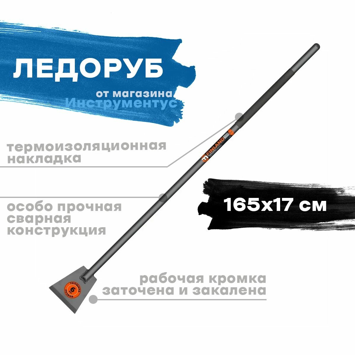 Ледоруб FINLAND 170 мм, 3 кг, металлический черенок арт.1842