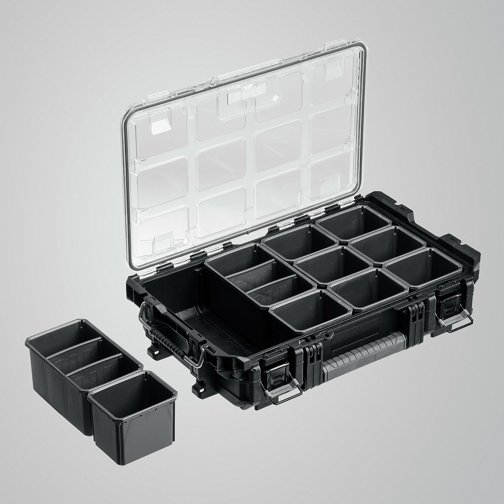 | Дополнительная информация | Высота с выдвинутой ручкой - 105 см, Степень защиты от воды и пыли IP65, Штабелируется с боковыми ручками, совместим с сериями Pro Gear 1.0 и 2.0, Возможность стыковки на половину занимаемой площади, Съемная телескопическая ручка с 9-дюймовыми колесами, Прочные защелки и удобная ручка с мягкой рукояткой, Запирается (навесной замок в комплект не входит), Органайзер для мелких деталей в комплекте для оптимальной гибкости хранения, Монтируемый (не включая крепления размера L) |