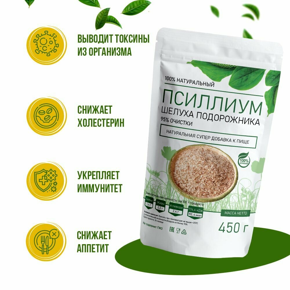 Полезно и Вкусно! Псиллиум шелуха семян подорожника порошок 450 г
