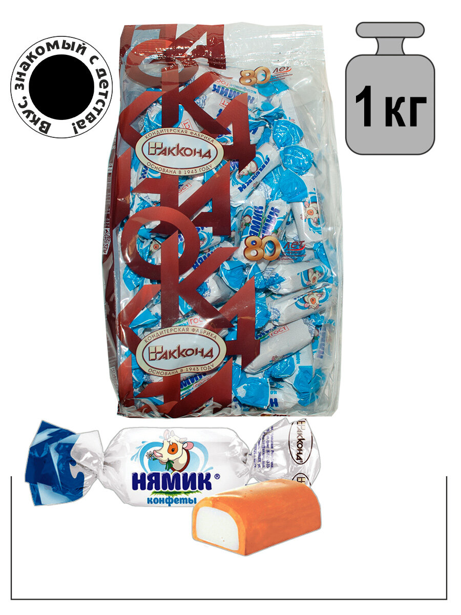 Акконд / Конфеты "Нямик" молочно-карамельные 1000гр./Вкус, знакомый с детства! интересное: