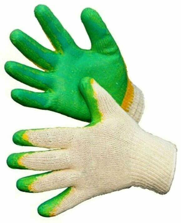 Перчатки х/б с двойным латексным обливом 10 пар ( рабочие трикотажные )