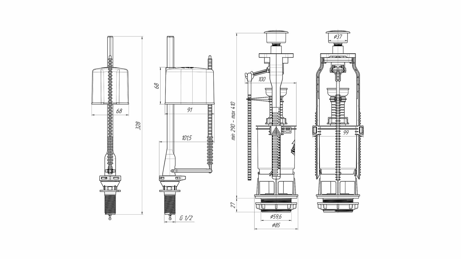 Арматура для бачка сливная/наливная Эконом 1/2" нижнее подключение кнопка белый 1/реж АНИ Пласт WC6550